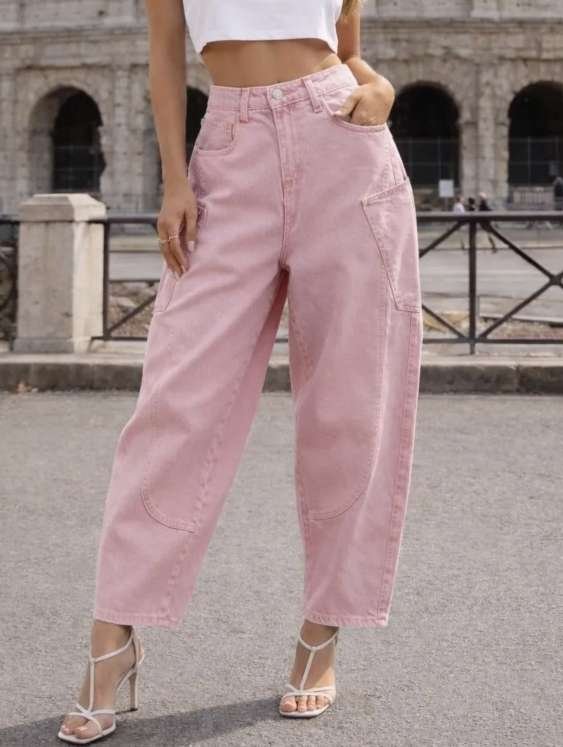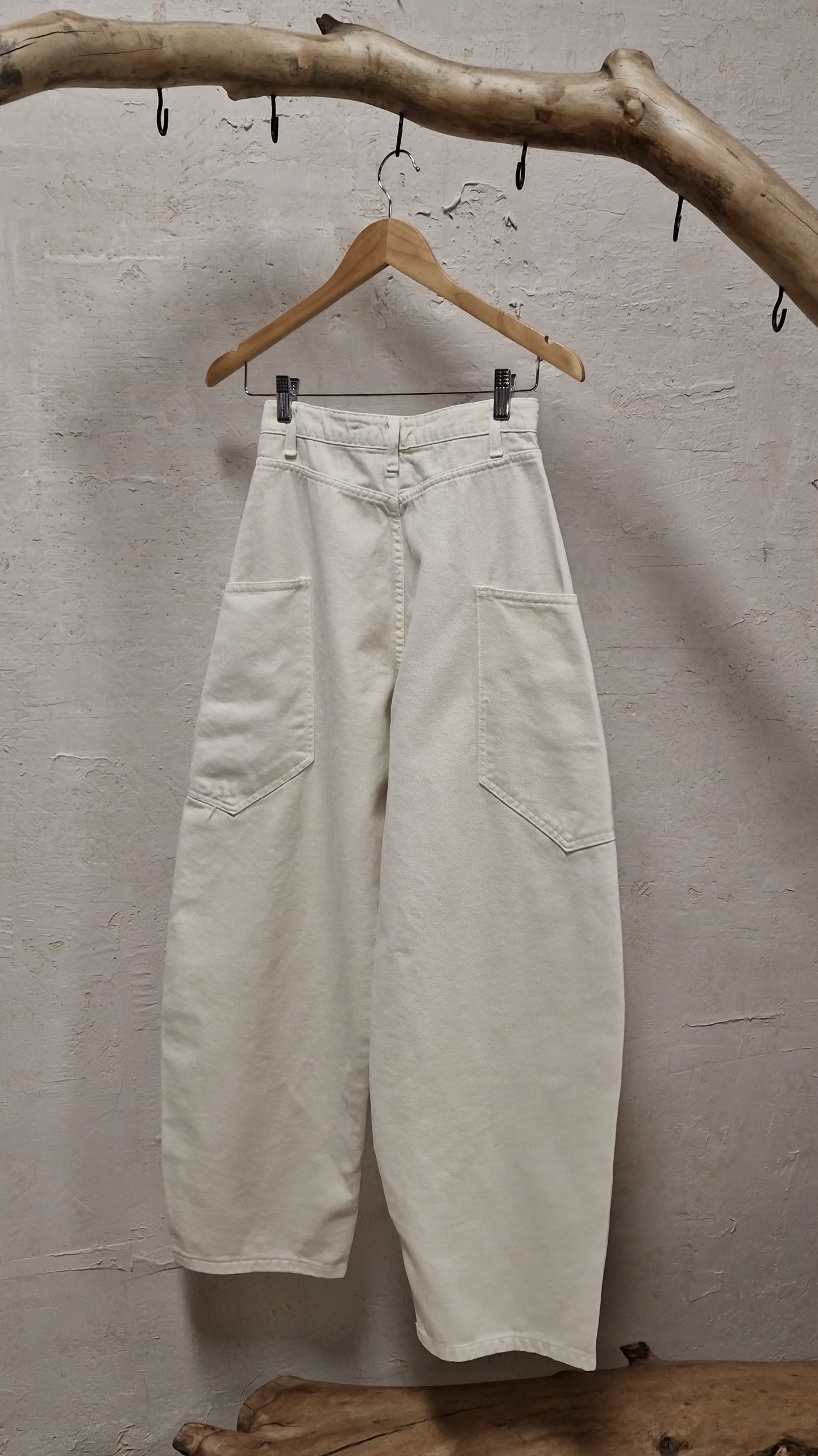 Ψηλόμεσο barrel τζιν παντελόνι με κανονική εφαρμογή. Διαθέτει επιλπέον πλαινές τσέπες.