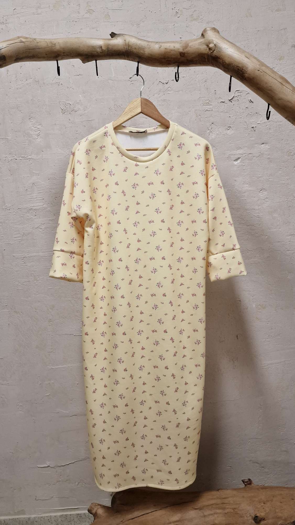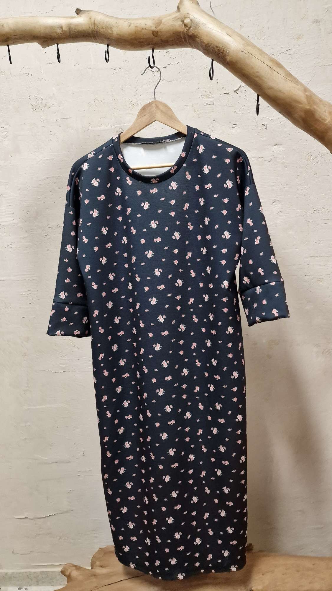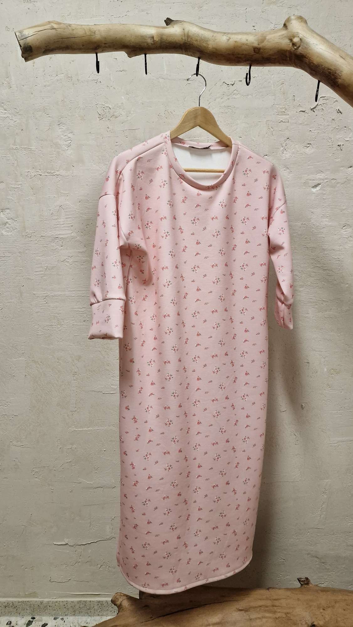 Midi floral φούτερ φόρεμα με άνετη εφαρμογή και ανοίγματα χαμηλά στο πλαινά.