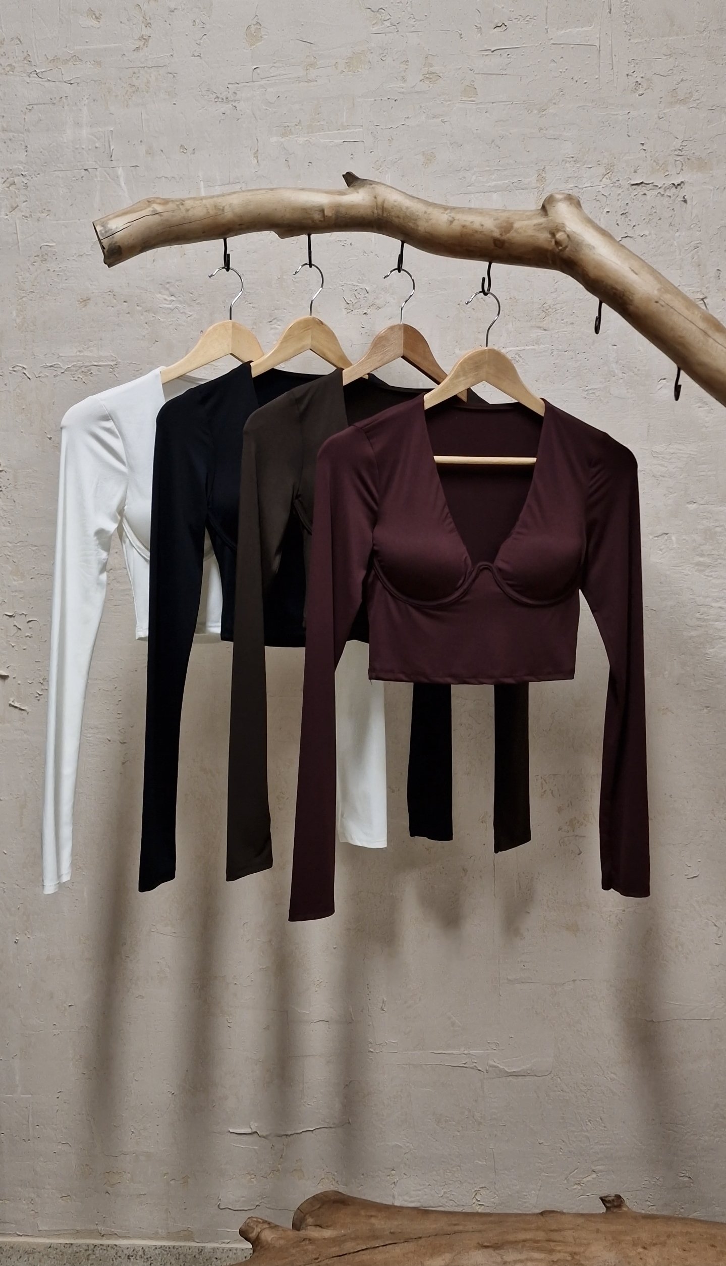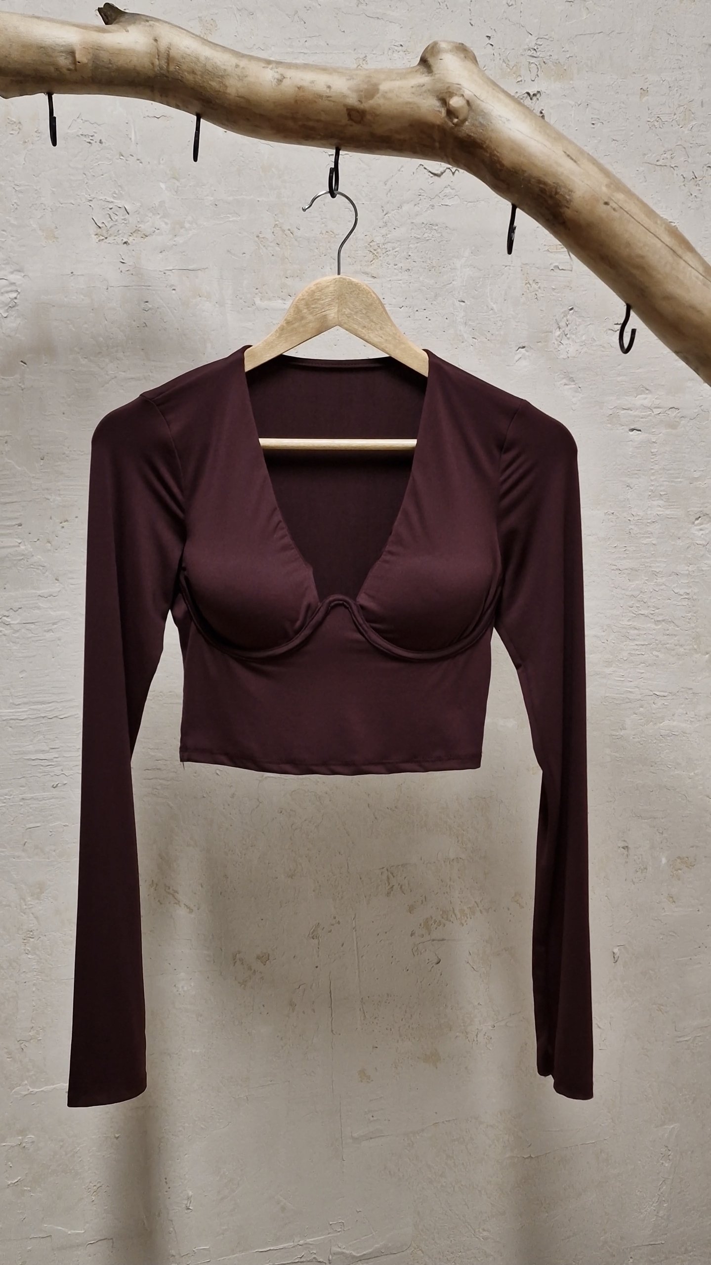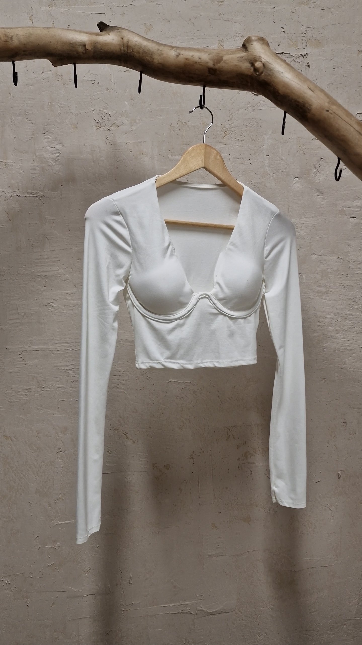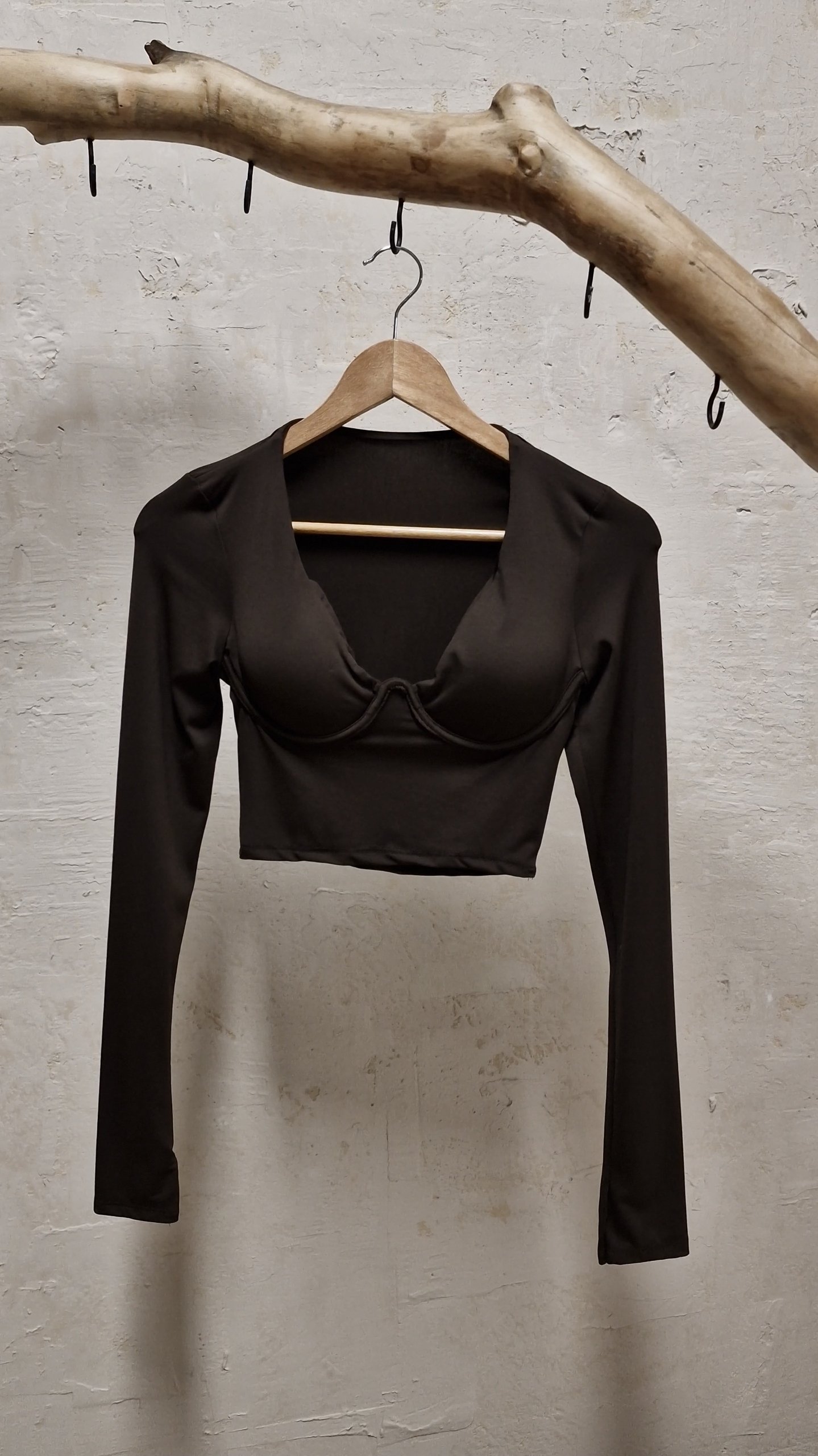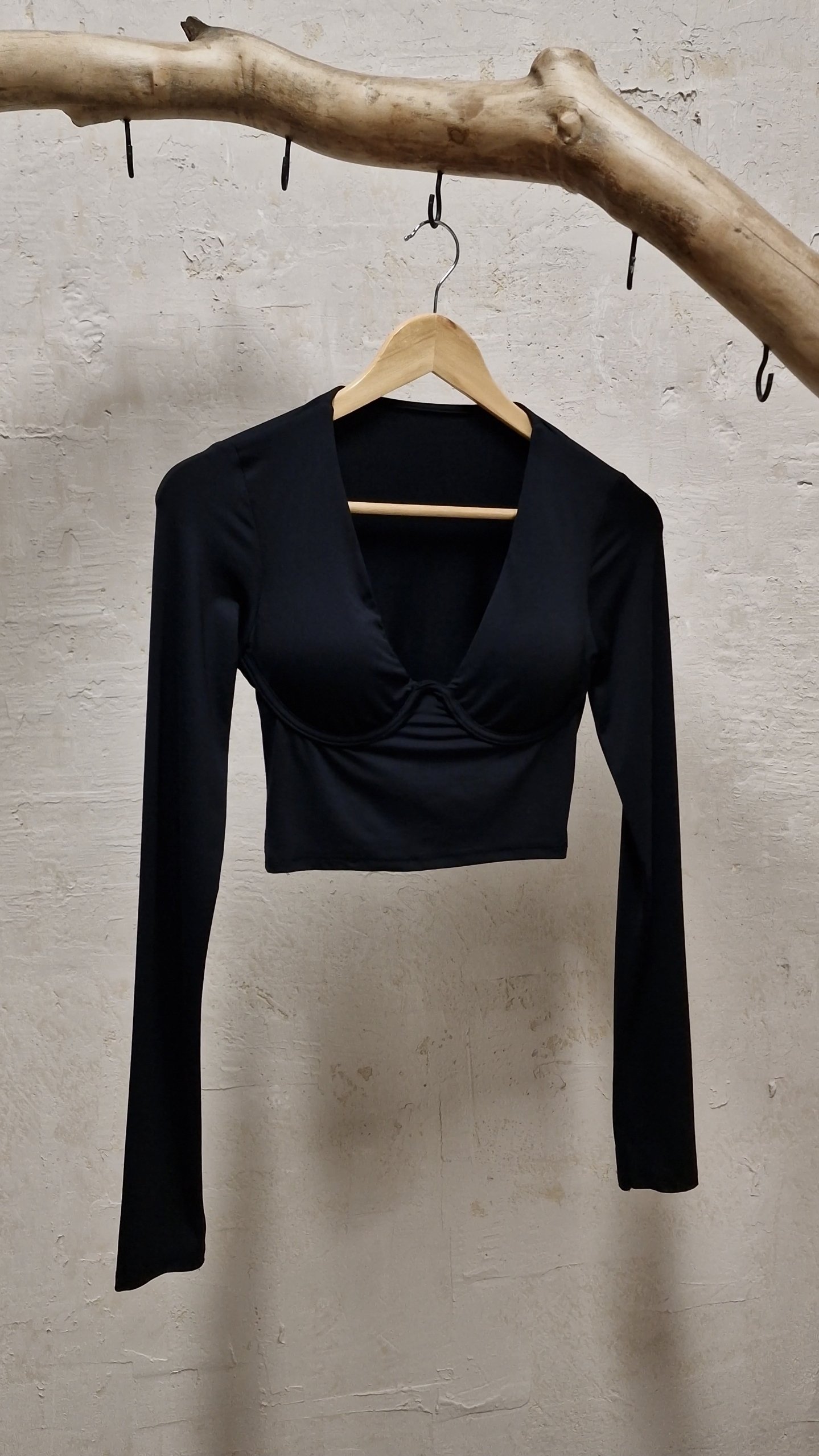 Cropped μπλουζάκι μακρυμάνικο με μπανέλα.