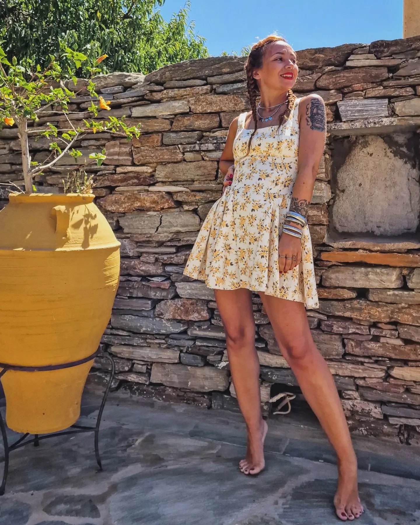 Ezri mini floral εξώπλατο φόρεμα με ενσωματωμένο ζωνάκι στη μέση.