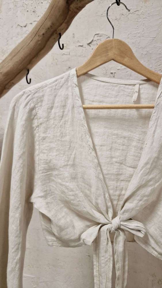 One size λινό cropped πουκάμισο με ρυθμιζόμενο δέσιμο για μεγαλύτερη άνεση. Μπορεί να φορεθεί και από τις δύο πλευρές.