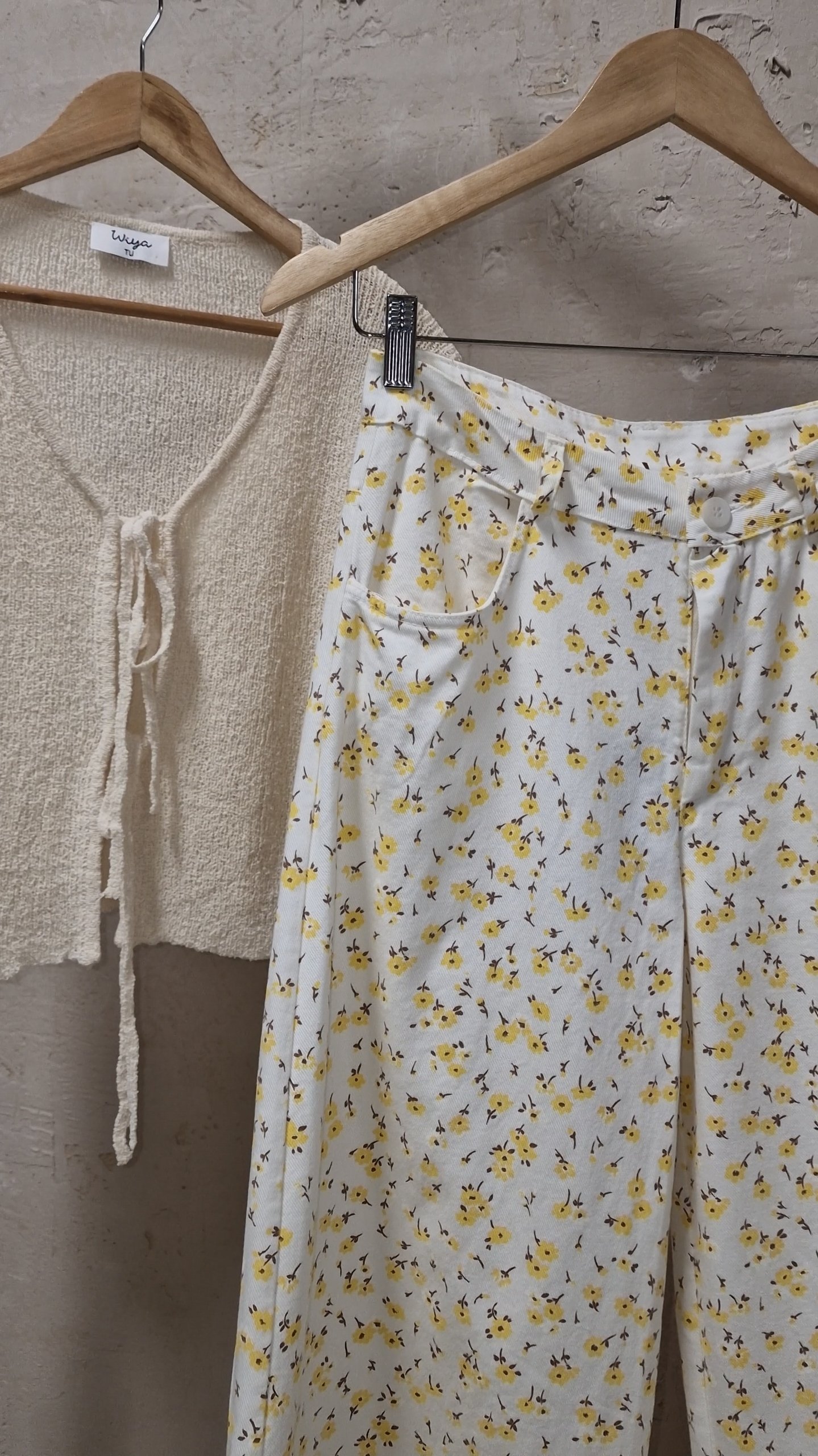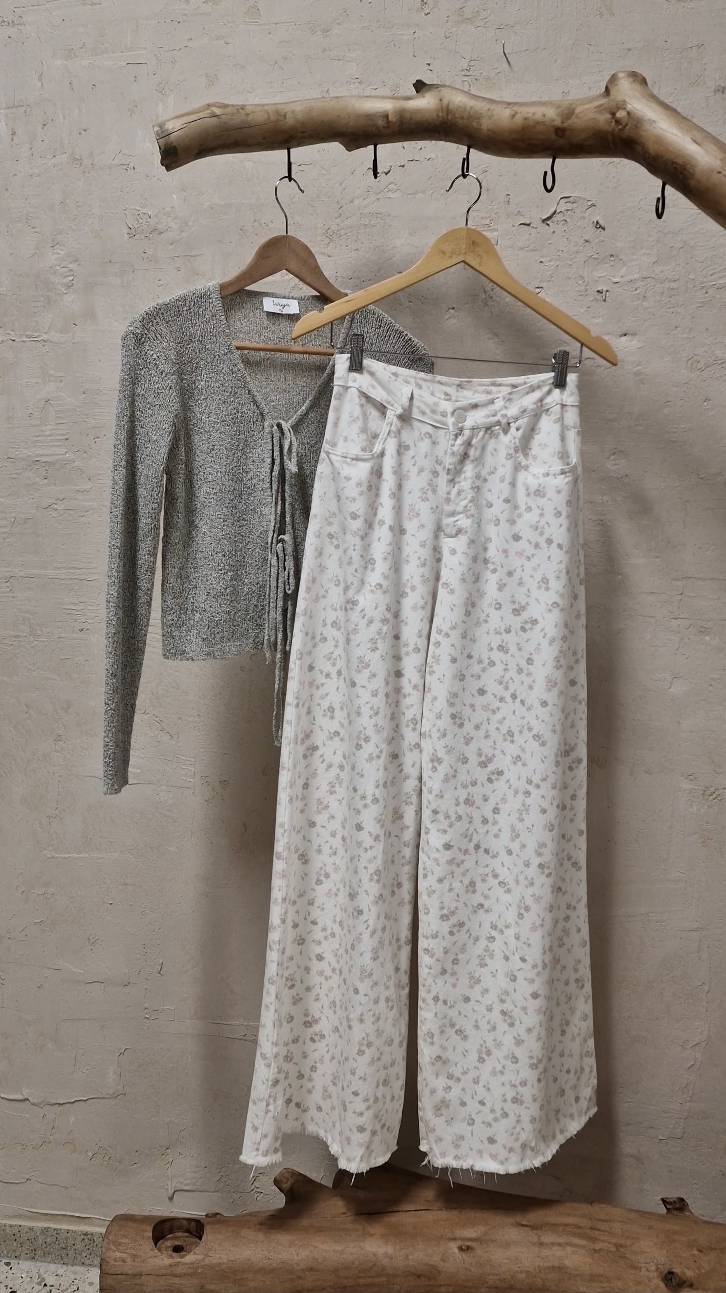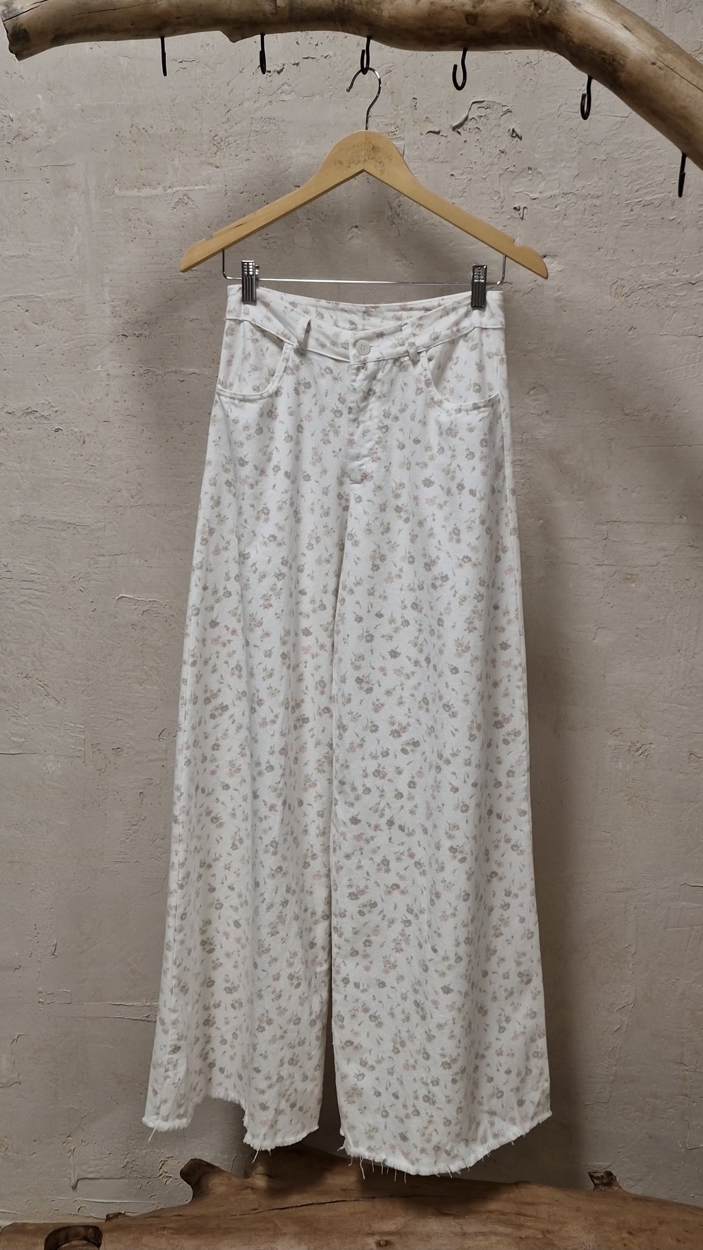 Ψηλόμεσο τζιν παντελόνι με κανονική εφαρμογή και λεπτομέρειες απο φλοράλ μοτίβο.