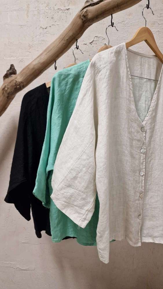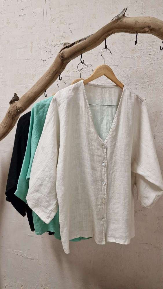 One size oversized λινό πουκάμισο με άνετη εφαρογή. Διαθέσιμο σε τρία χρώματα.