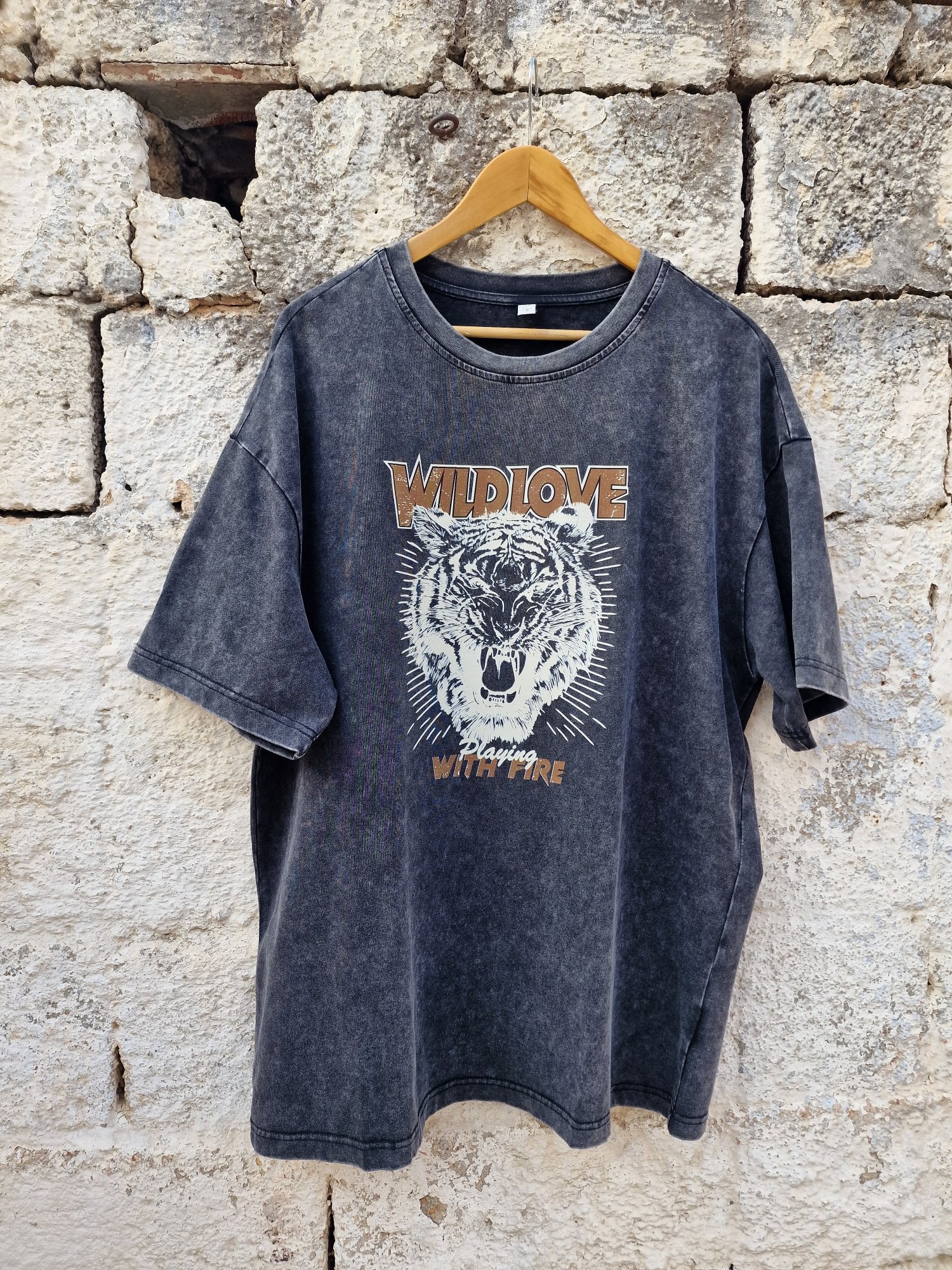 One Size βαμβακερό T-Shirt με τύπωμα Tiger χρυσό και oversized εφαρμογή.