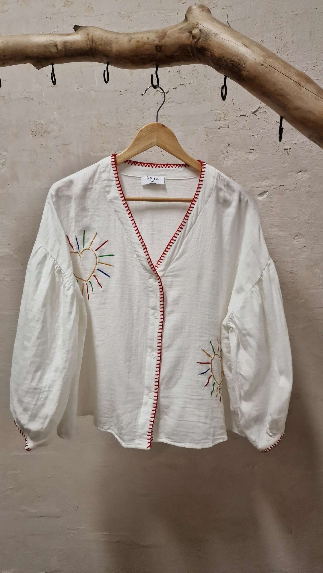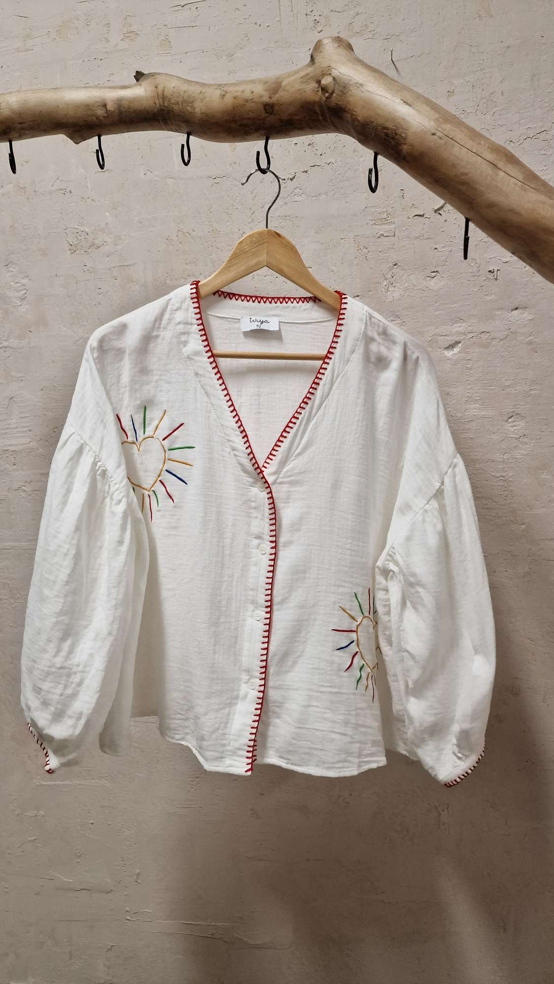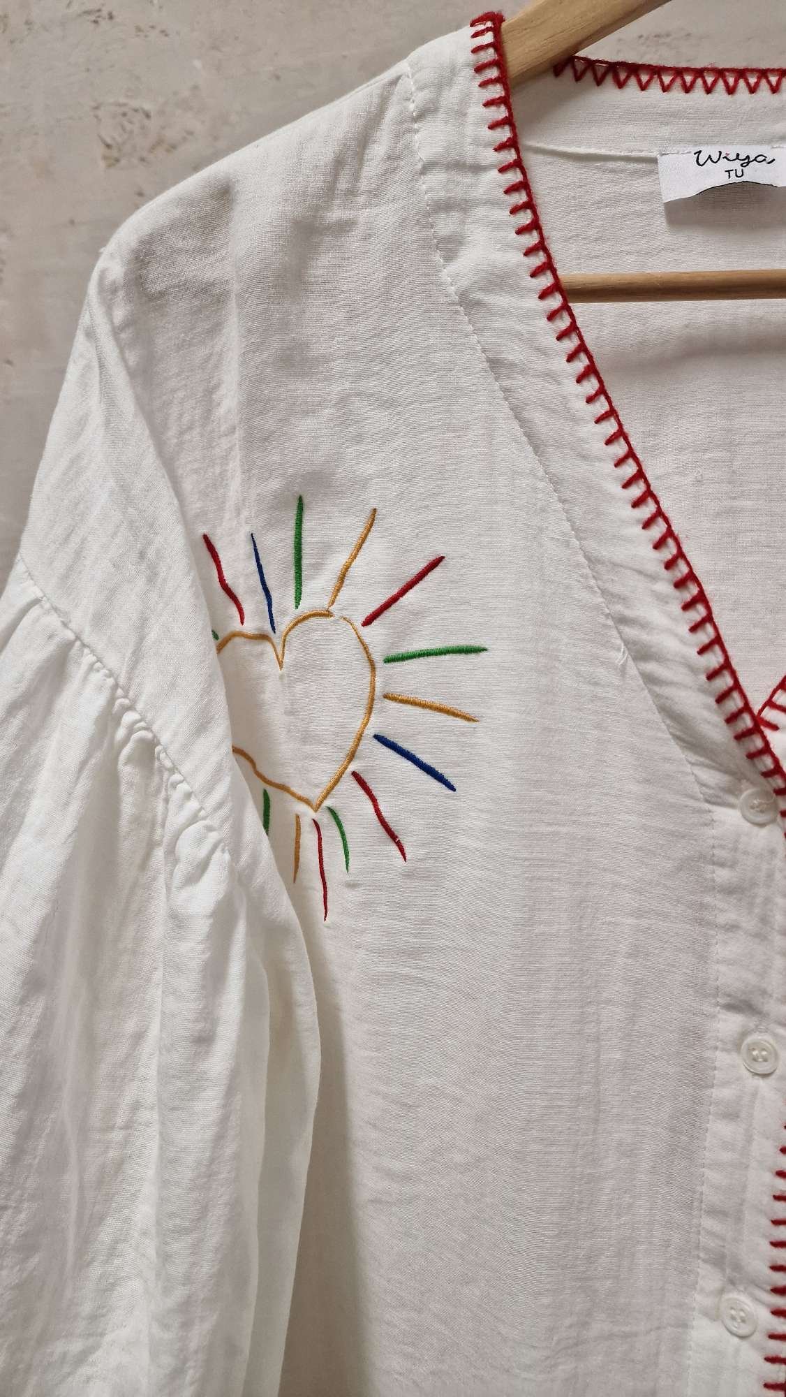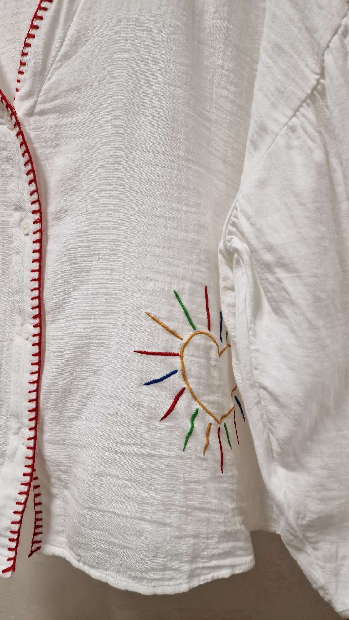 One Size βαμβακερό πουκάμισο με άνετη γραμμή και κεντημένα σχέδια.