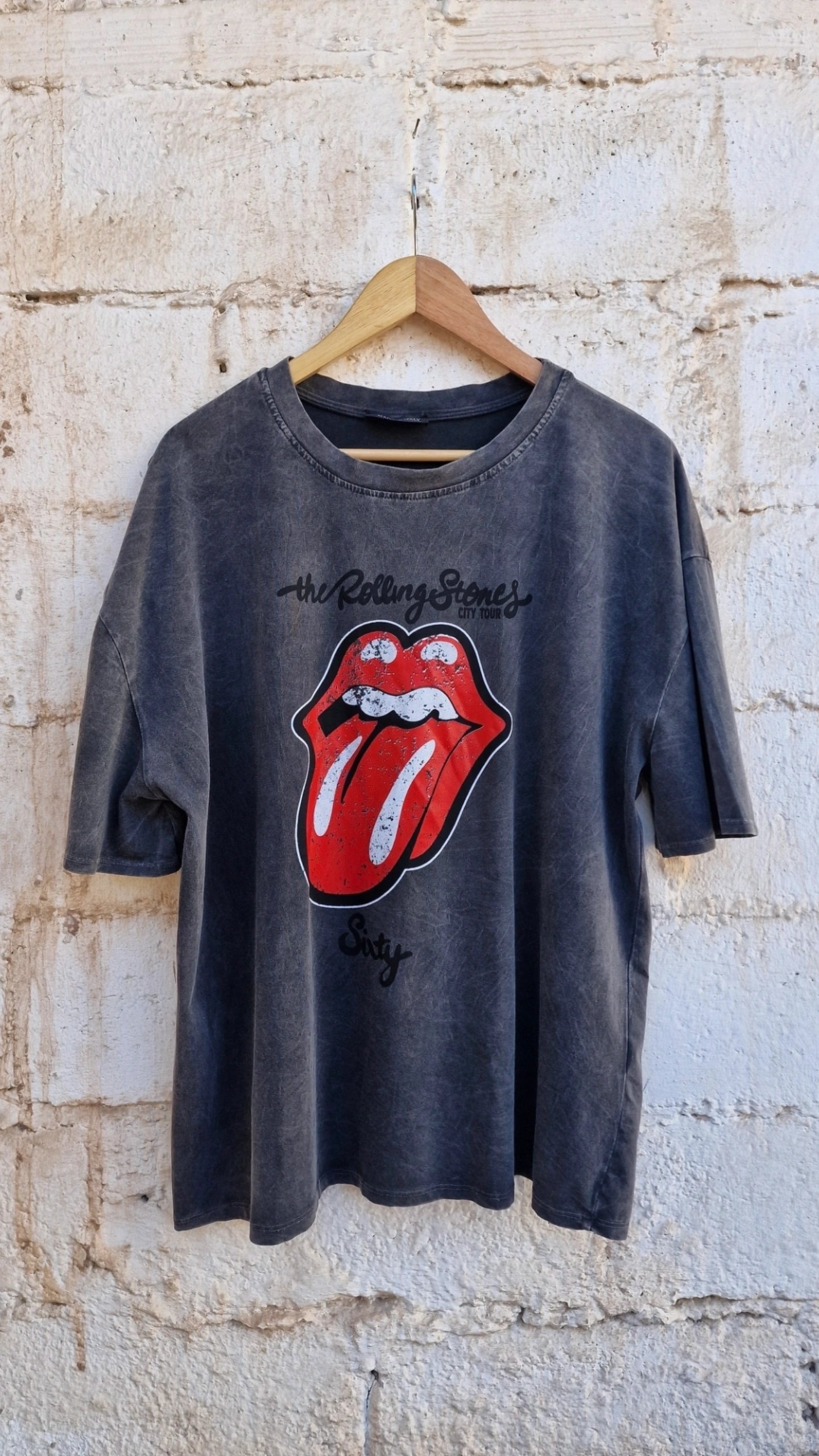 One Size Βαμβακερή T-Shirt με άνετη εφαρμογή, τύπωμα Rolling Stones και στρογγυλή λαιμόκοψη.
