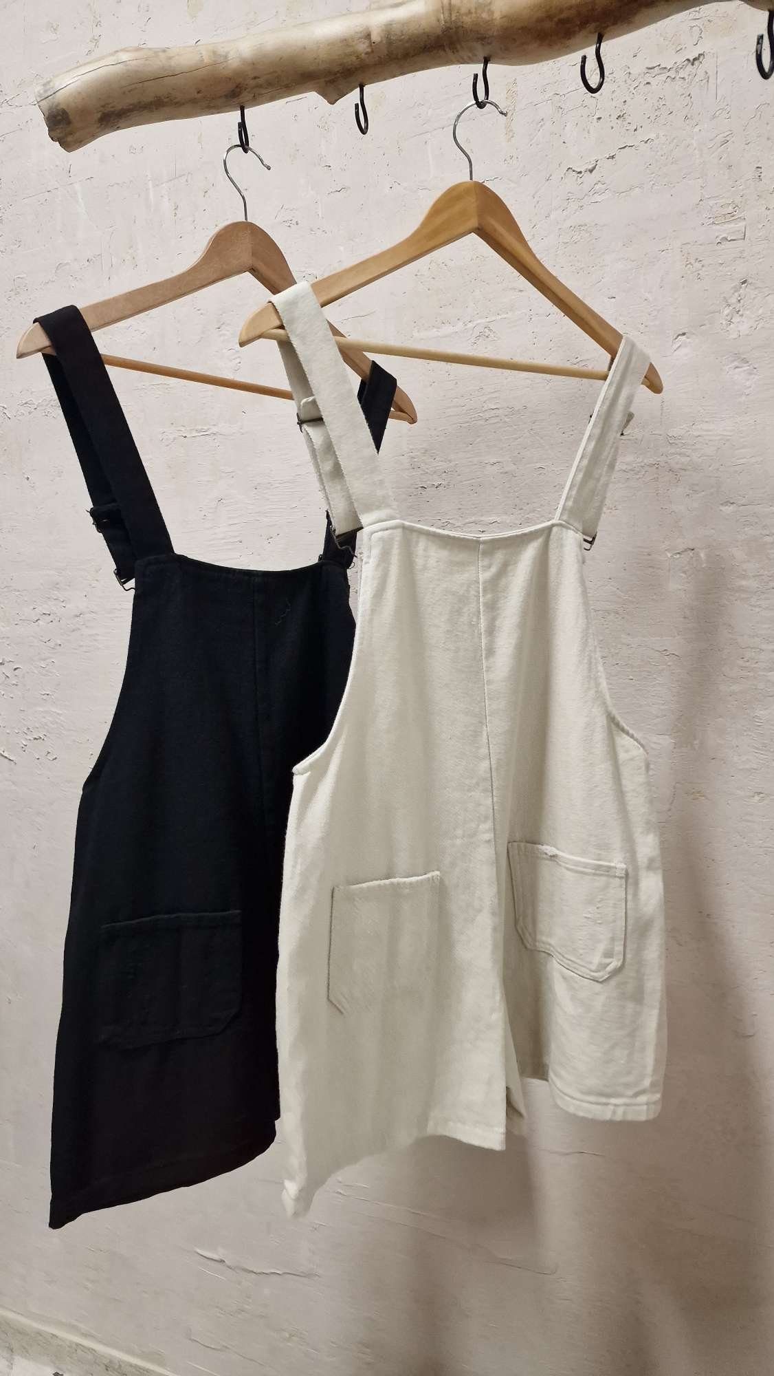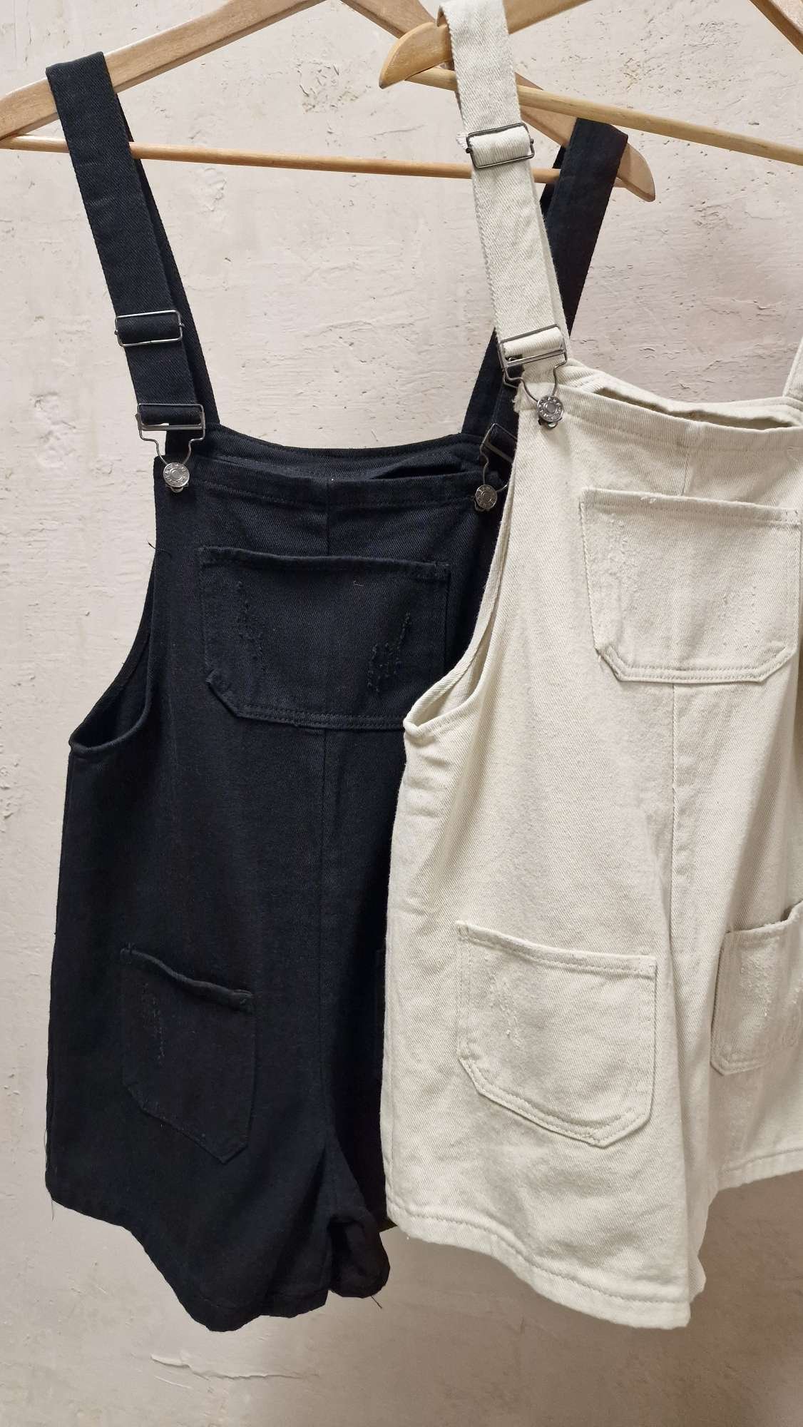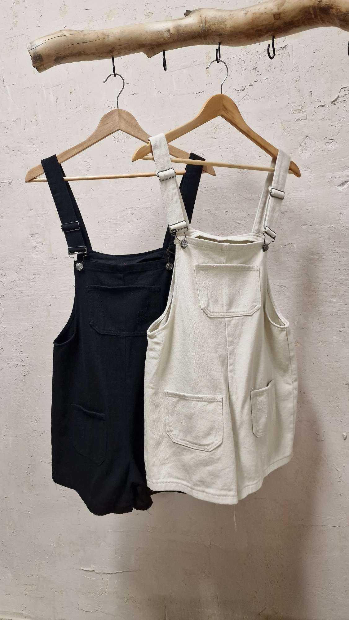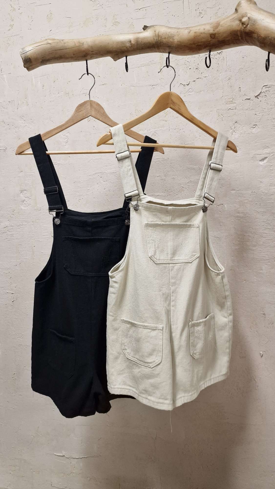 One size τζιν σαλοπέτα – σόρτς με κανονική εφαρμογή. Διαθέτει τσέπες και ρυθμιζόμενες τιράντες.