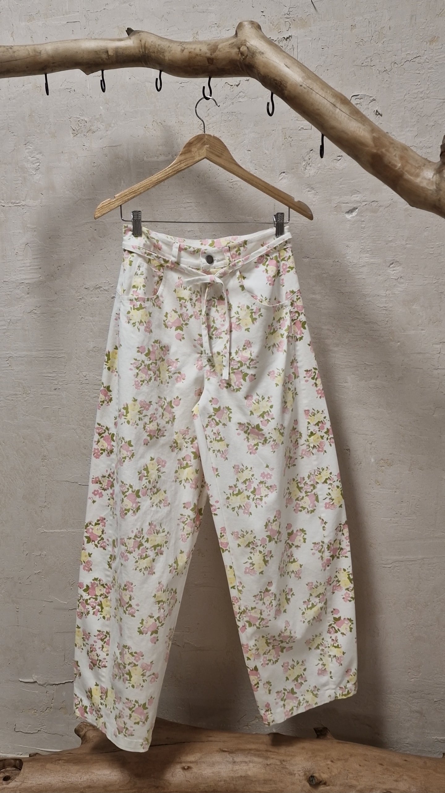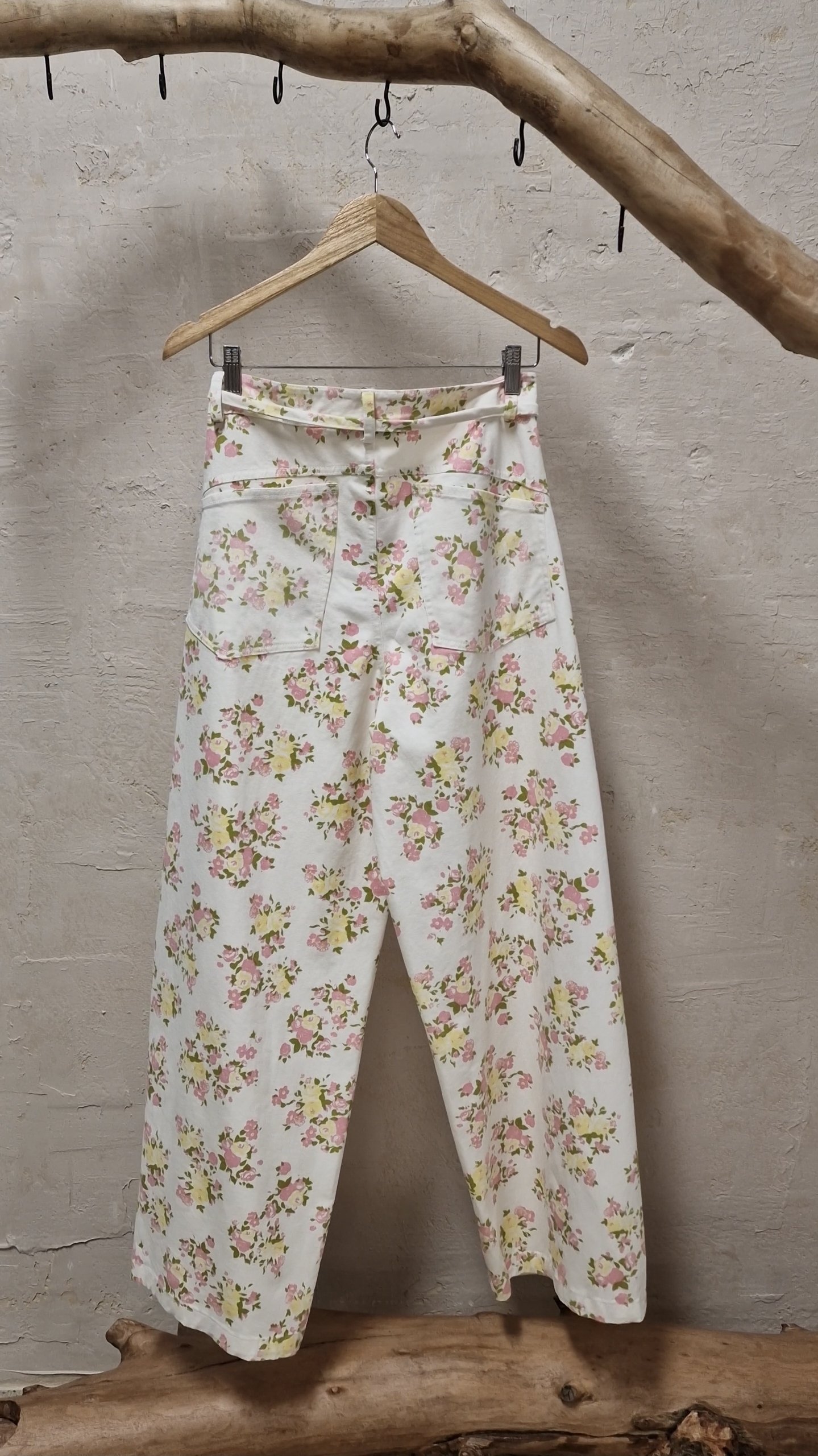 Ψηλόμεσο τζιν παντελόνι με άλφα γραμμή, ελαστικότητα και φλοράλ μοτίβο.